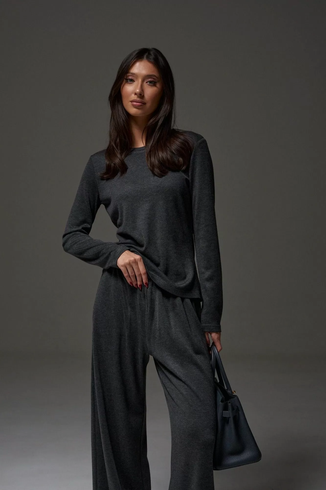 Джемпер выполнен из трикотажного полотна. Характеристики: полуприлегающий силуэт, овальная горловина. Рукав втачной, длина 71 см. Длина по спинке 60 см.