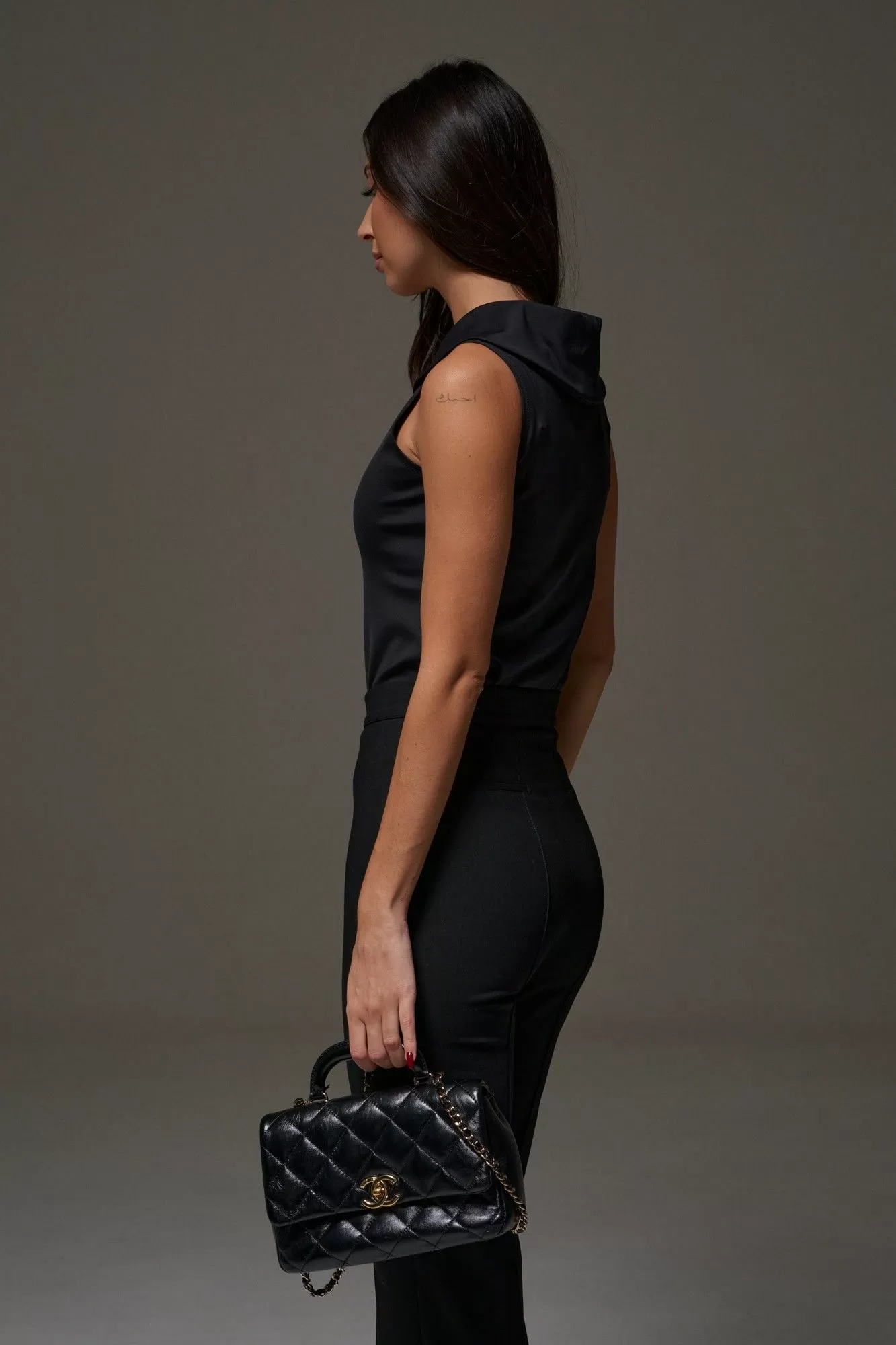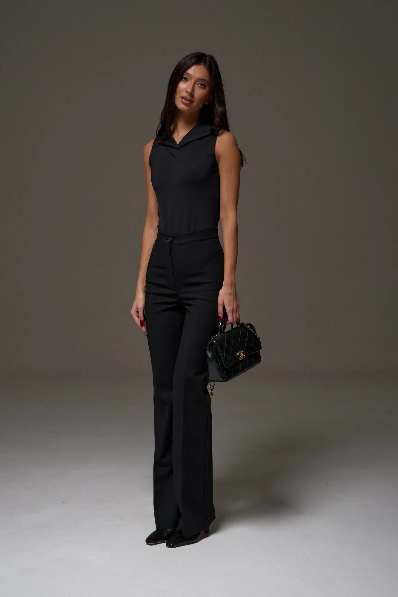 Боди прилегающего силуэта выполнен из эластичного полотна. Характеристики: прилегающий силуэт, горловина стойка, по низу застежки на три кнопки. Длина от верхнего края плеча до низа 47 см.