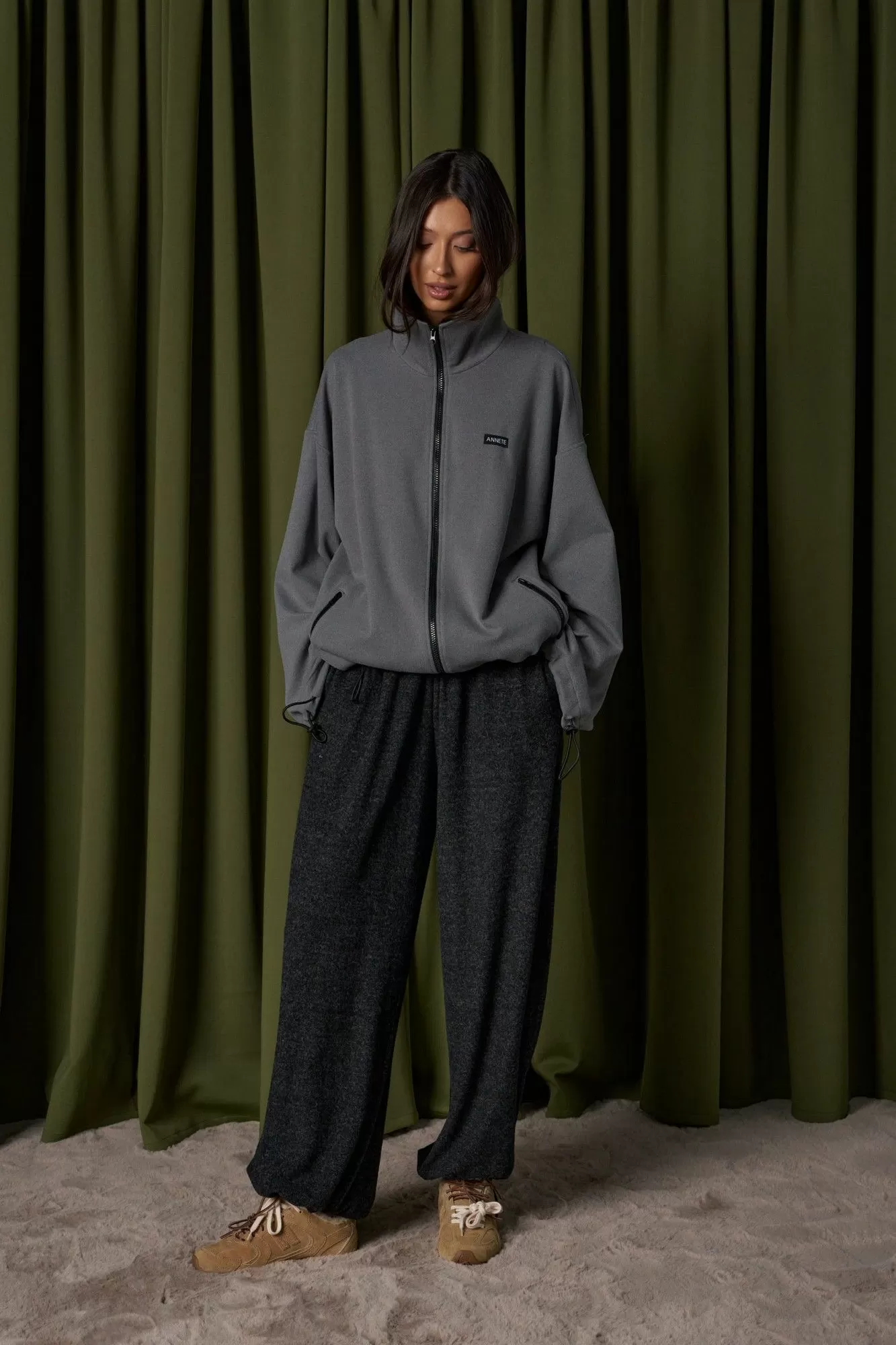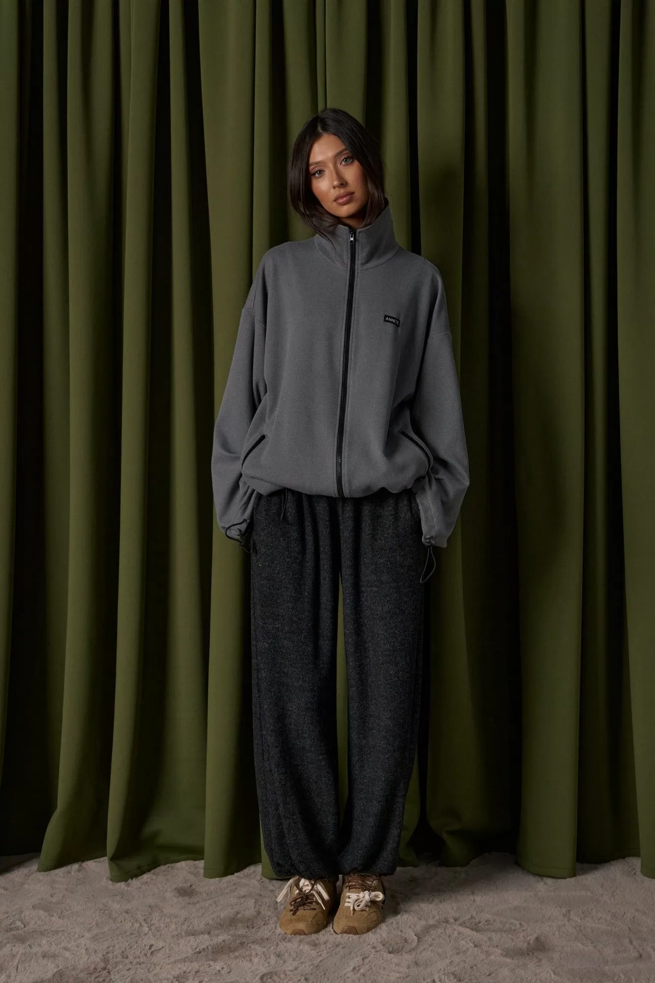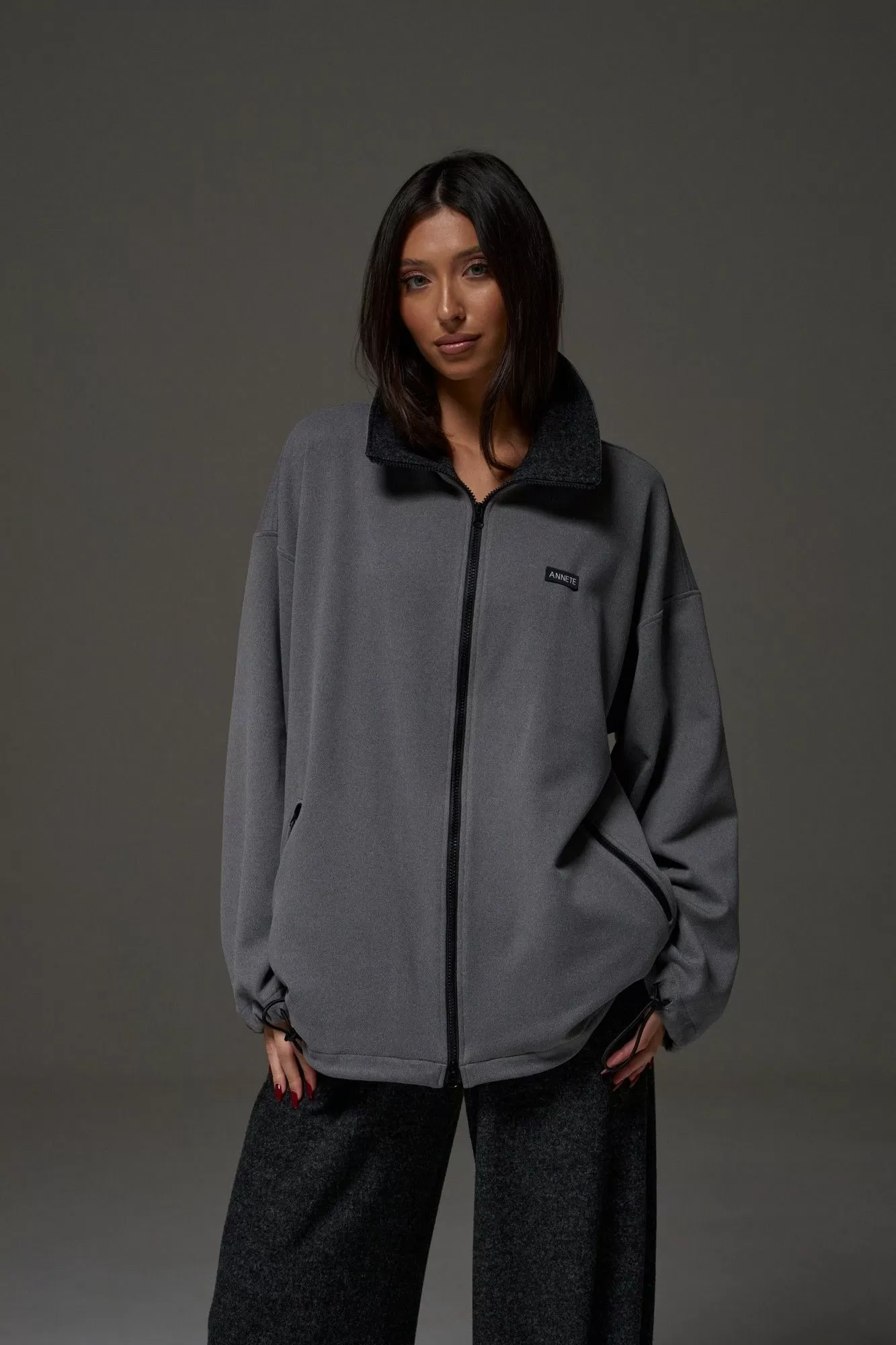 Джемпер прямого силуэта, выполнен из трикотажного полотна серого цвета. Характеристики: горловина круглая, воротник стойка черного цвета, рукав втачной, спущен, по низу рукава кулиса с втянутым шнуром-резинкой, регулируемой фиксаторами, прорезные карманы на молниях, спереди брендированная нашивка. Застежка центральная на молнию. По низу изделия кулиса с втянутым шнуром-резинкой, регулируемой фиксаторами. Длина изделия по спинке 73 см, длина рукава от горловины 81 см.