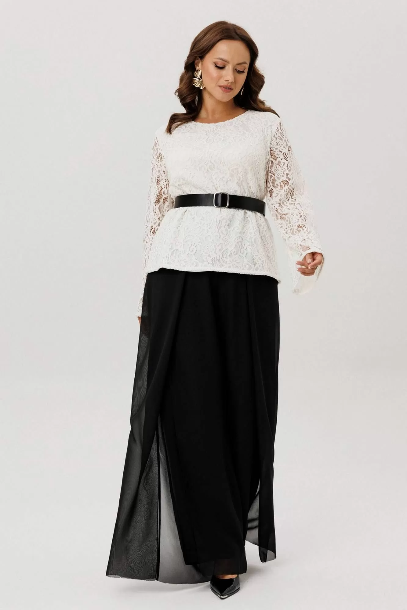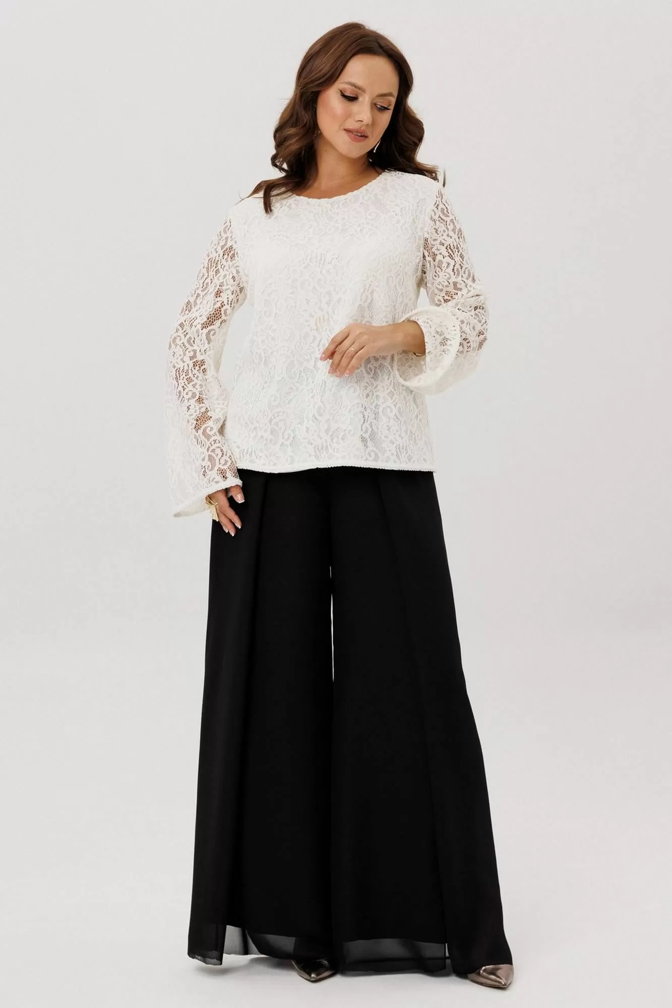 Блузка полуприлегающего силуэта, вырез горловины округлый, рукав втачной-клеш. Изделие на подкладке, без застежки.