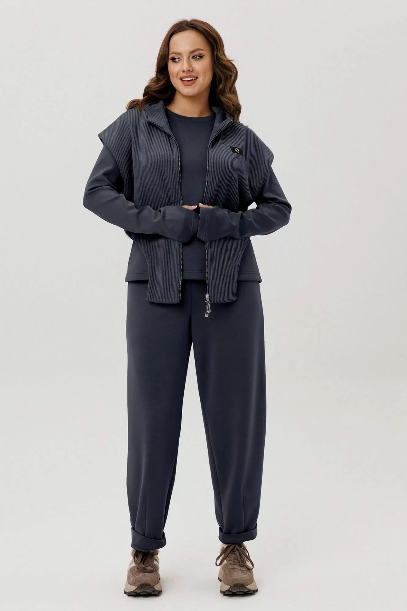 Комплект тройка состоящий из жилета, джемпера и брюк.