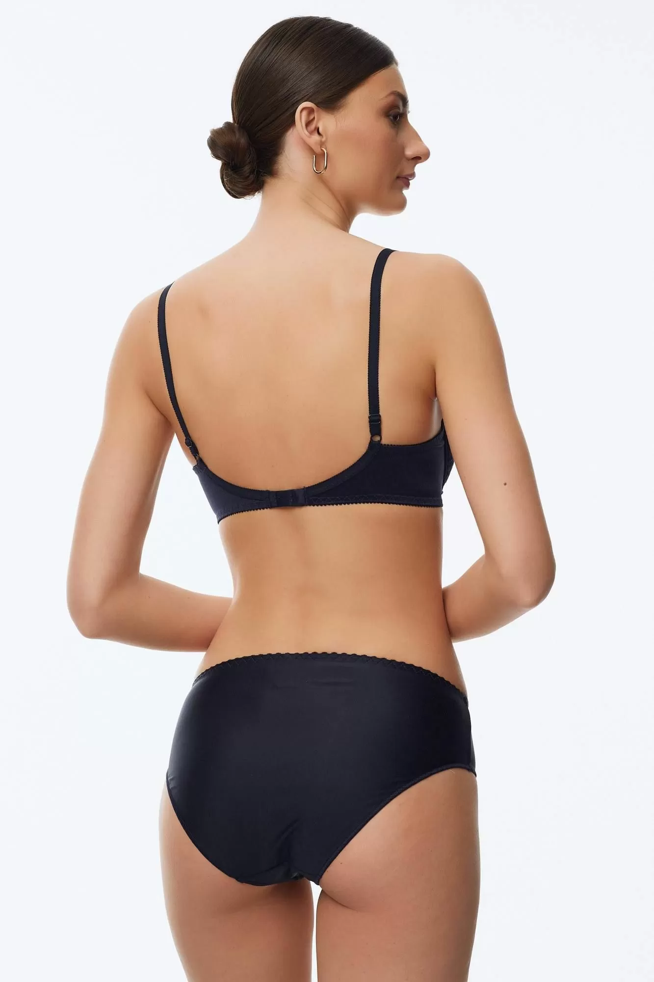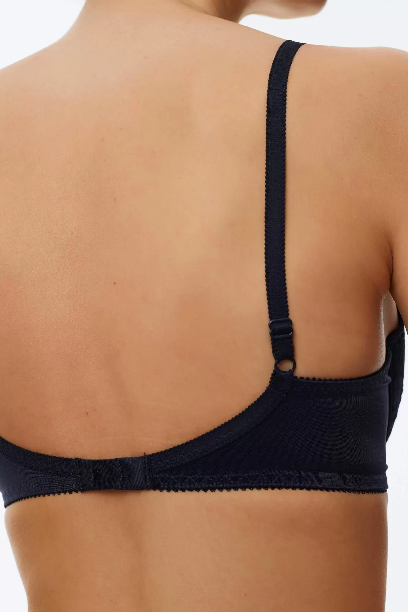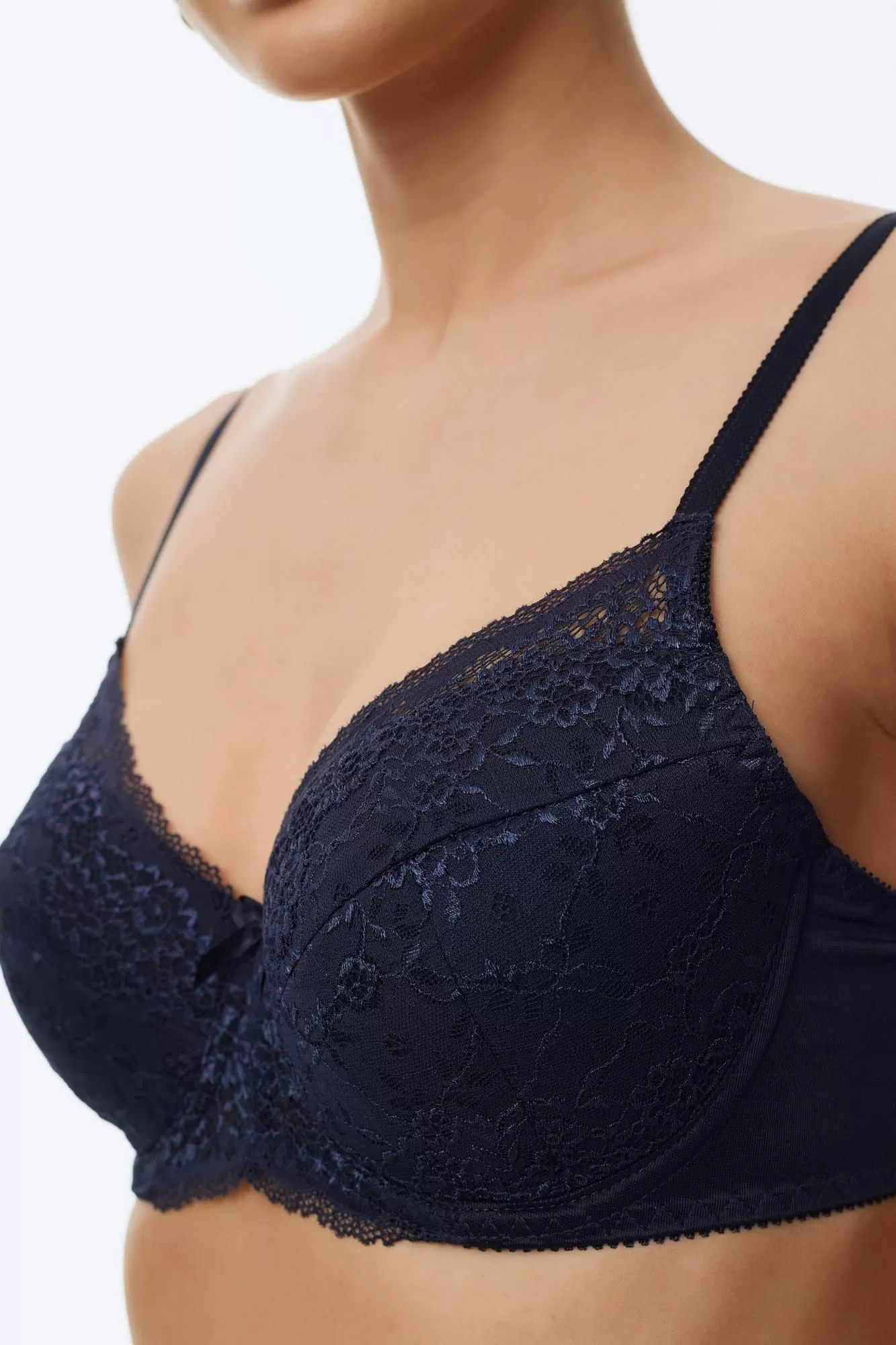 Бюстгальтер из эластичного кружева и эластичного трикотажного полотна на среднюю размерную группу. Чашка выполнена из дубляжа, присутствуют каркасы («косточки»).