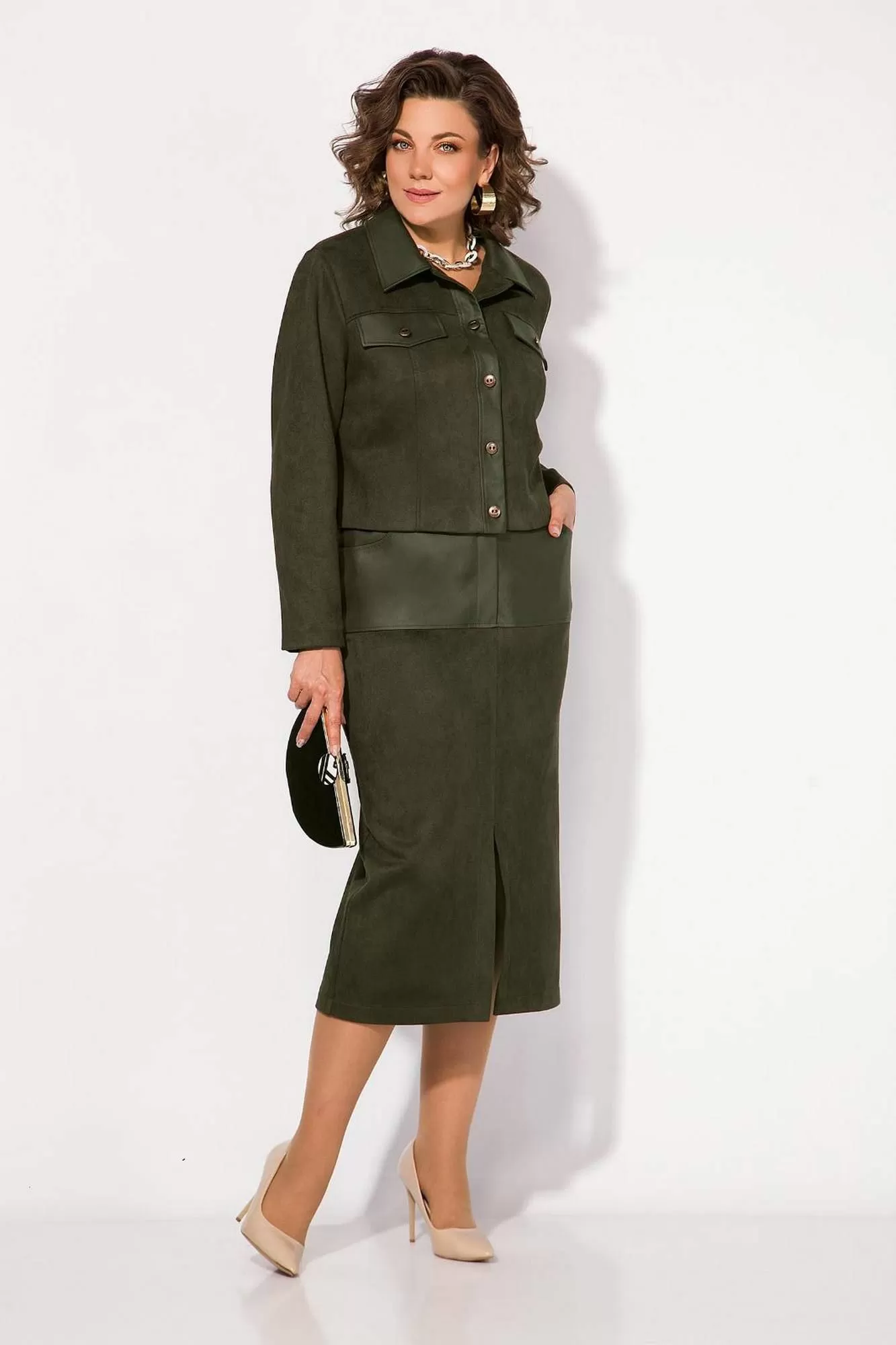 Хит сезона 2025-26 замшевый костюм с юбкой от бренда LILIANA. Невероятно мягкий, уютный комплект из замшевого материала в составе жакета на пуговицах и юбки карандаш с разрезом по переду. Жакет полуприталенного силуэта с отложным воротником. Застежка центральная на декоративной планке, на петли и пуговицы. По переду и спинке предусмотрены декоративные кокетки с рельефными швами. Полочка с декоративными клапанами. Рука вточной, полной длины. В комплекте юбка-карандаш, длиной за колено. Пояс притачной, с резинкой по спинке. Застежка - тесьма молния с обработанным гульфиком. По переду расположены карманы. Изделие на шелковой подкладке.