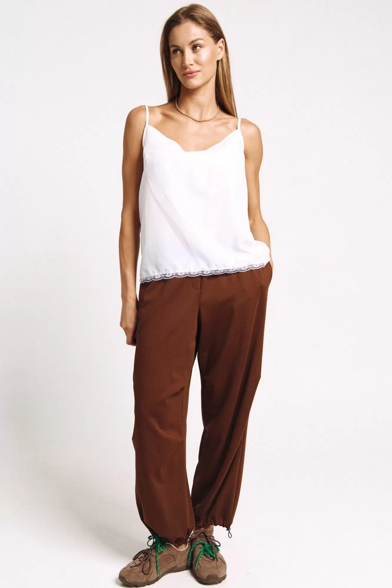 Комбинация с регулируемыми бретелями и тонким коужевом по низу. Прямой силуэт.