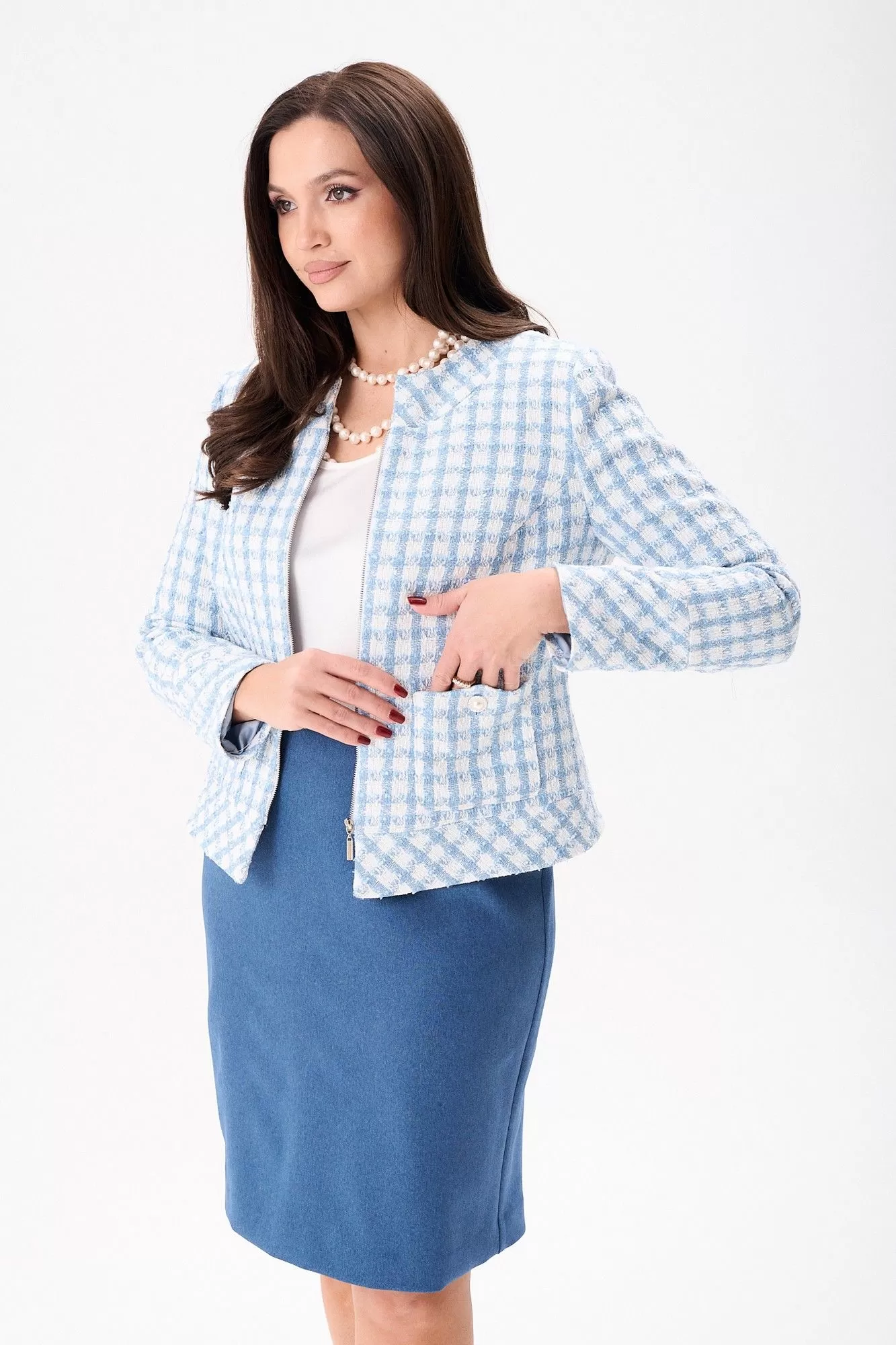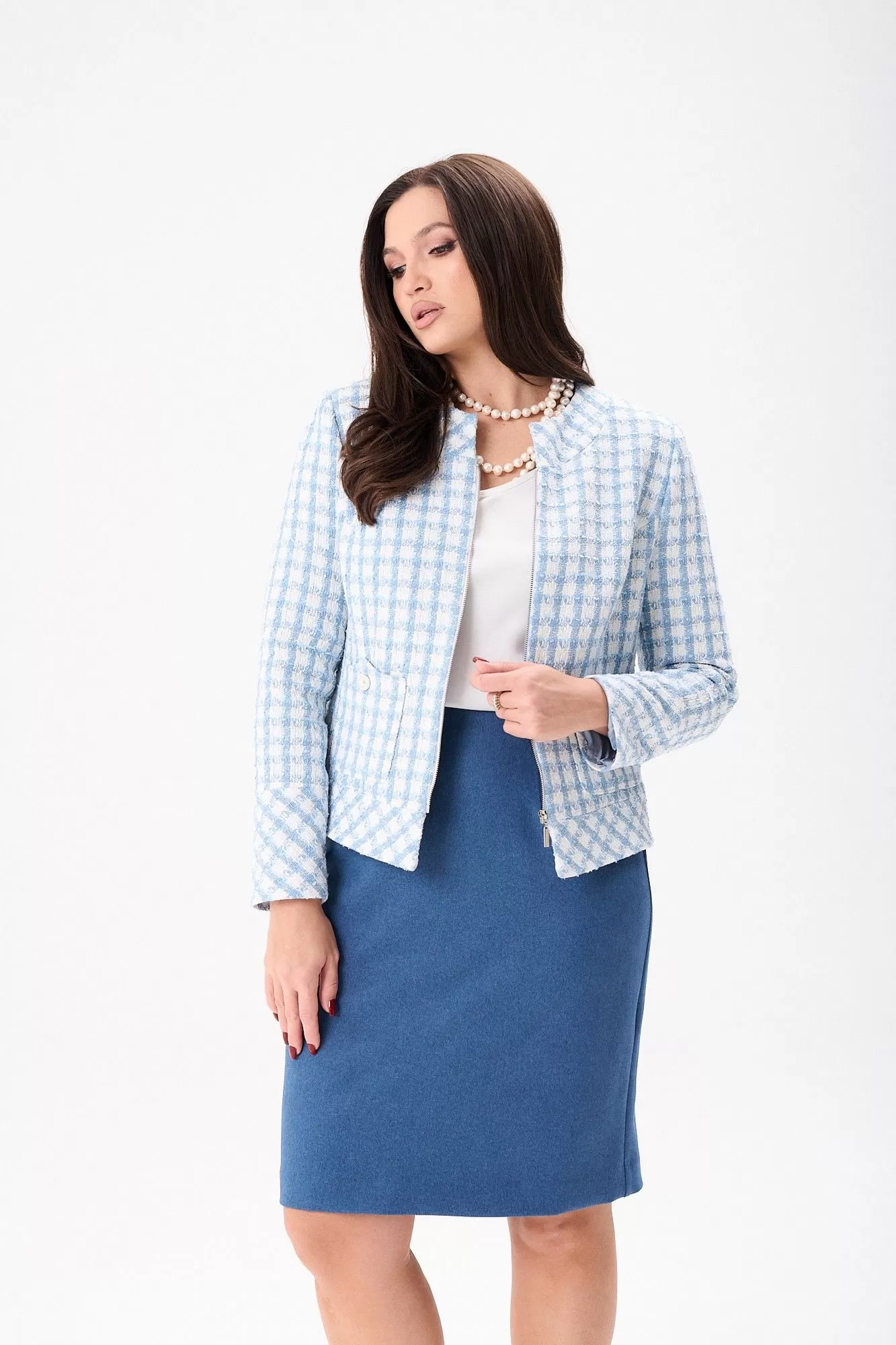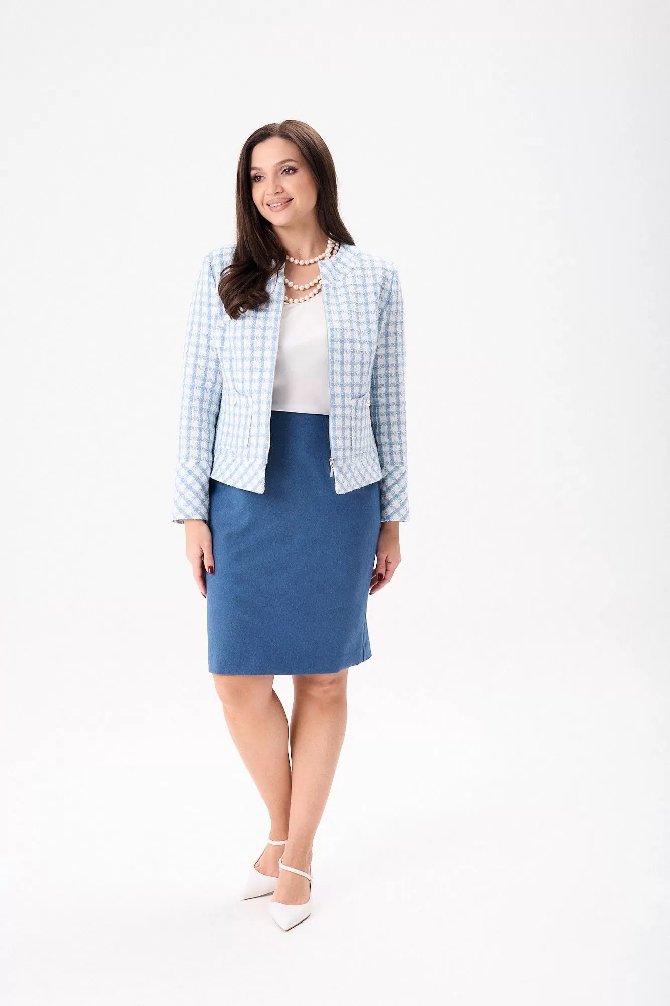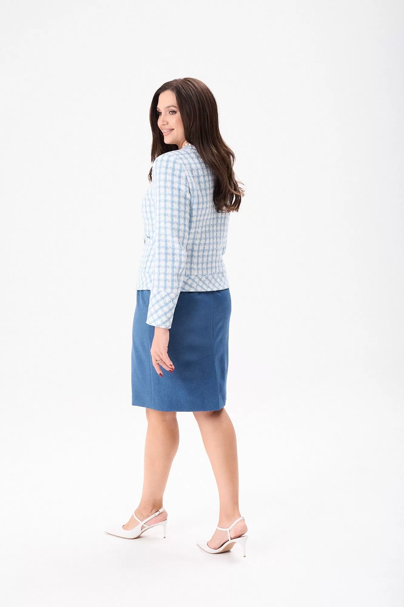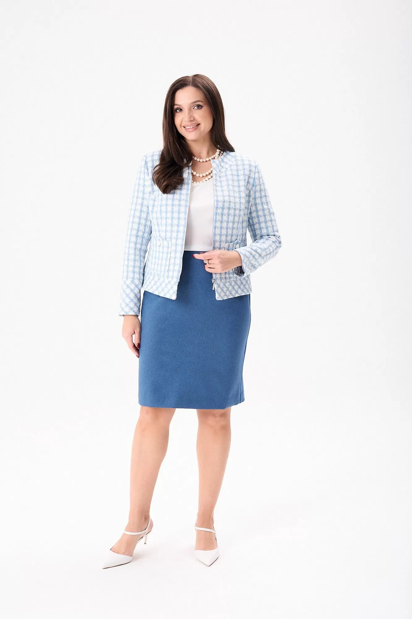 жакет: п/э 54%, вискоза 44%, мет.нить 2%; юбка: вискоза 48%, полиэстер 48%, спандекс 4%
