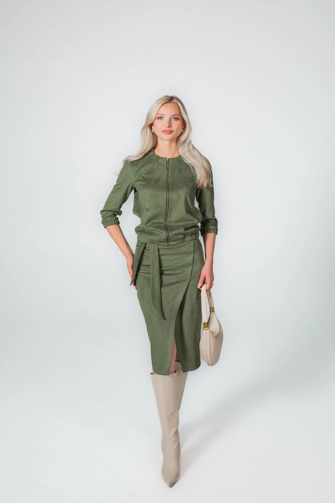 MONA STYLE FASHION&DESIGN 25025 оливковый, Юбочный костюм